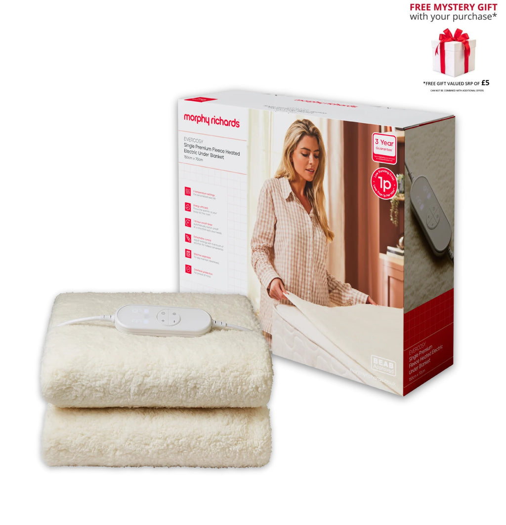 Morphy Richards 600020 EverCosy Single Premium Fleece Heated Electric Under Blanket - Free Gift RRP £5!